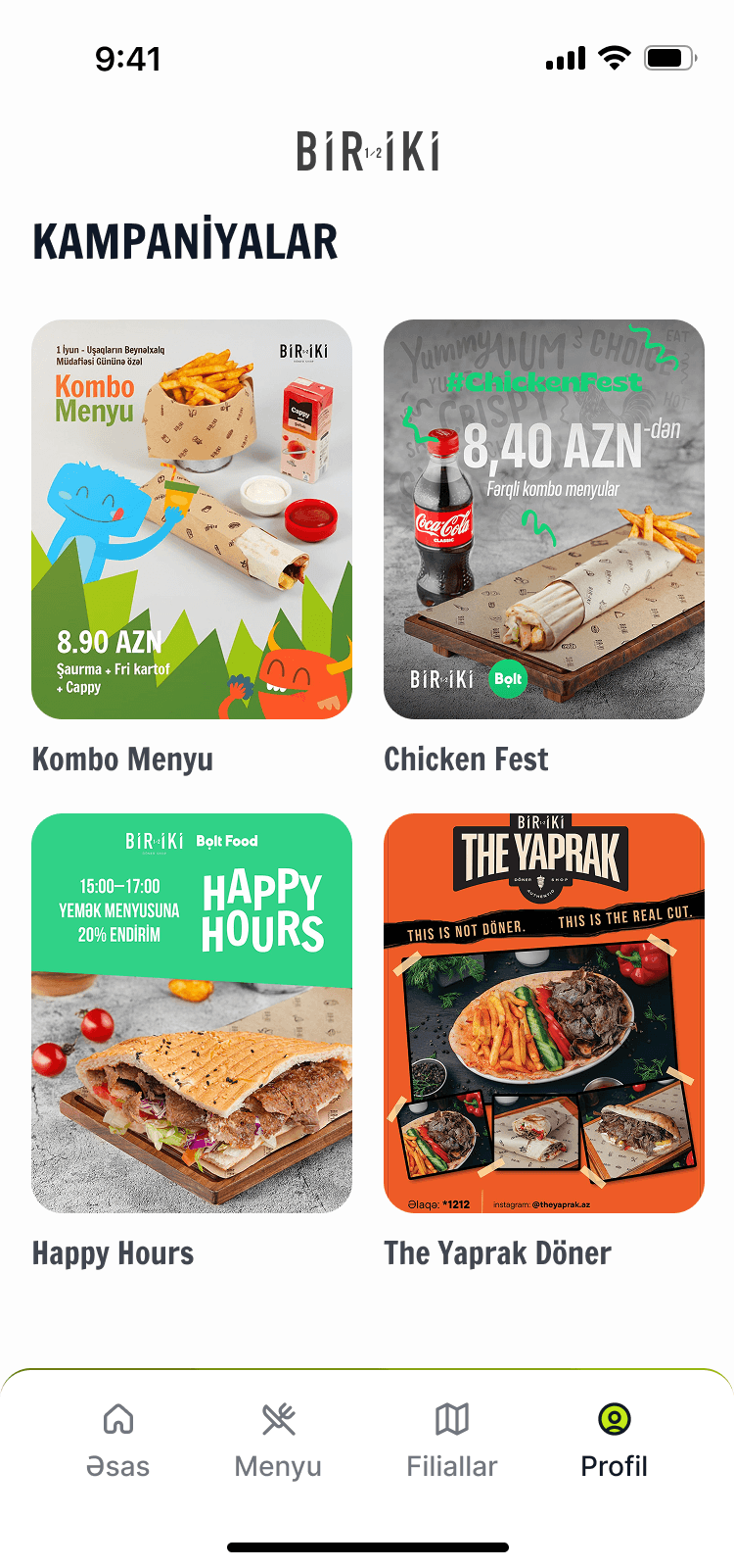 Bir-İki is a vibrant mobile app for the restaurant, known for simplifying menu discovery, branch location, and loyalty rewards through an engaging interface.