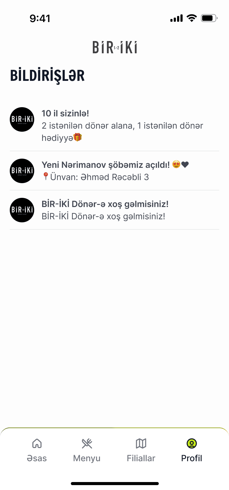 Bir-İki solves this with a user-friendly mobile app designed for effortless interaction with its restaurant services. Features include a comprehensive menu display, branch locator with addresses and directions, and a dynamic loyalty system with a scannable barcode and bonus points tracker on the main page. The app supports multilingual options, ensuring accessibility for diverse customers, and offers a streamlined interface for browsing, ordering, and earning rewards. Additionally, a robust backend system ensures smooth operation, securely managing user data, and loyalty point calculations, providing a reliable and delightful experience for Bir-İki’s customers.