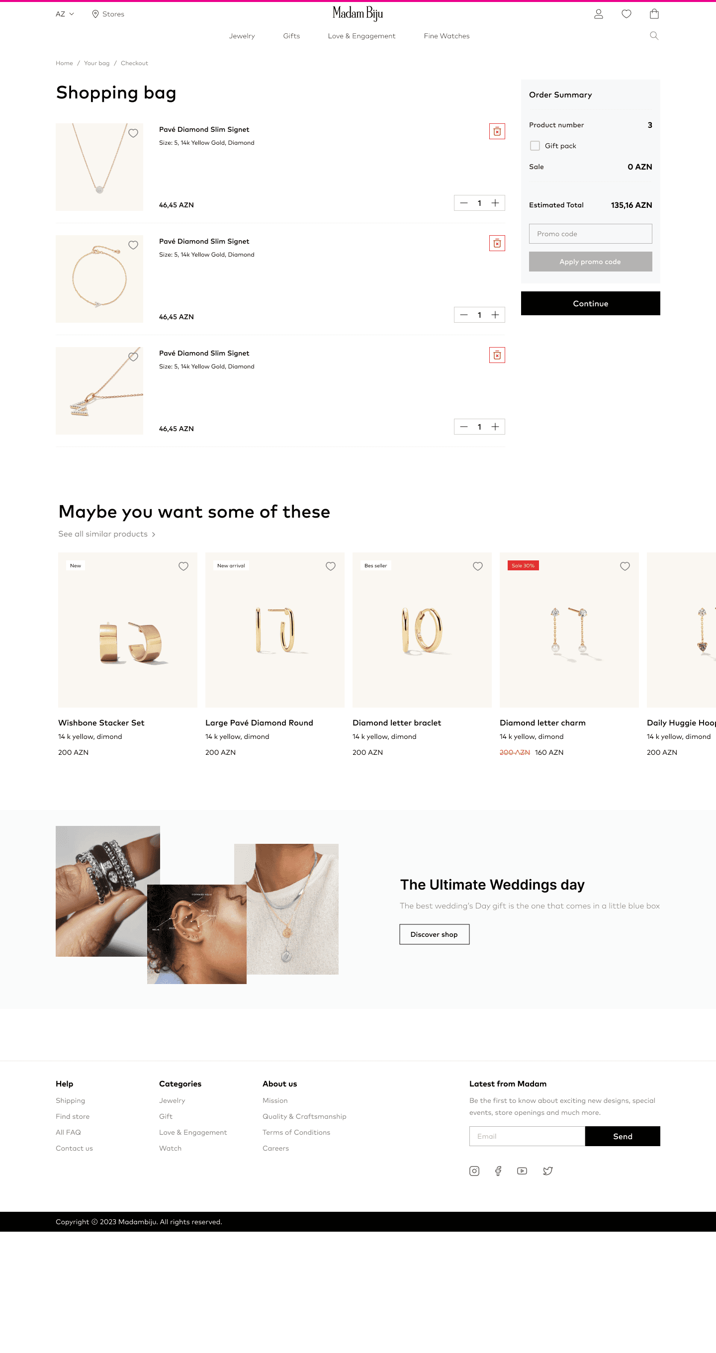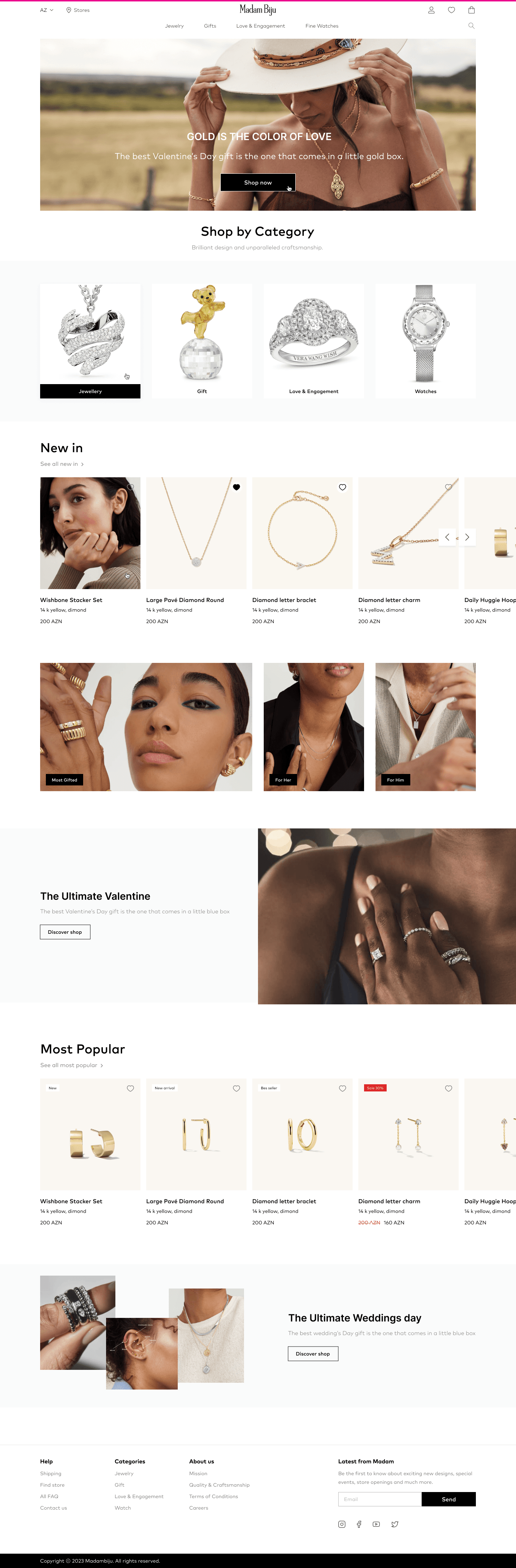 Madam Biju is a sophisticated online jewelry store crafted to offer an elegant shopping experience for premium silver and gold jewelry with seamless navigation.